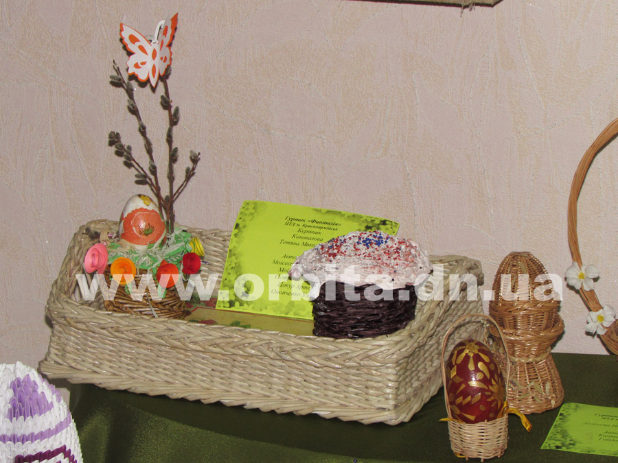На выставке представлены работы декоративно-прикладного искусства, выполненные в различных техниках, включая вышивку крестом, квиллинг, оригами, лозоплетение и другие.
