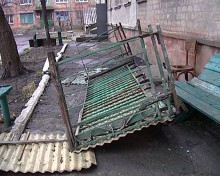 Сегодня, примерно в десять часов утра, жителей дома № 7 по переулку Колосова удивил непонятный грохот. Выйдя на улицу они увидели причину шума: железное ограждение балкона квартиры одной из жительниц снесло ветром во двор.