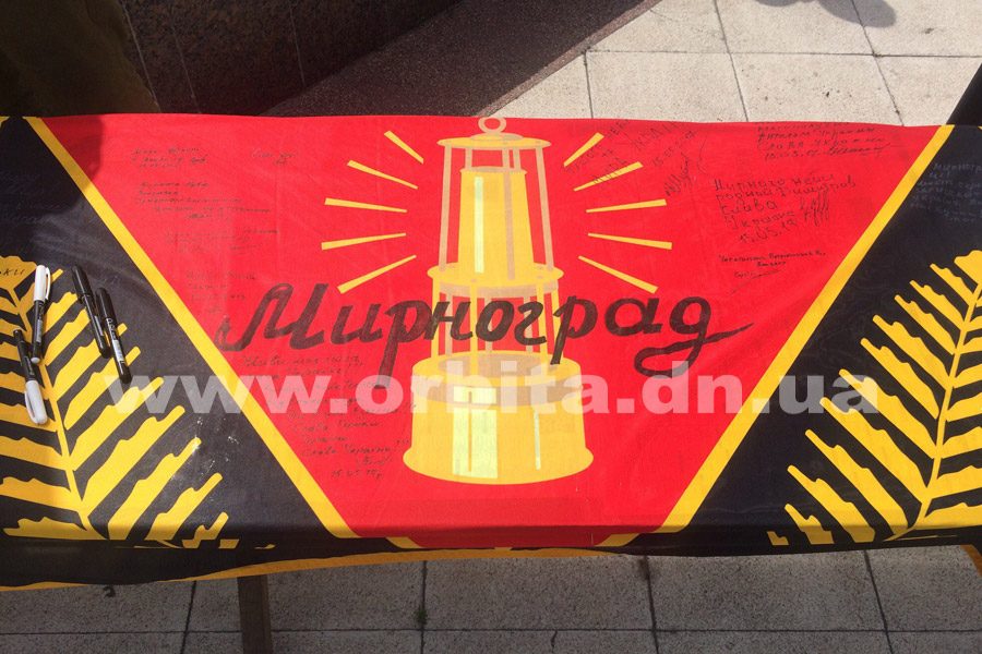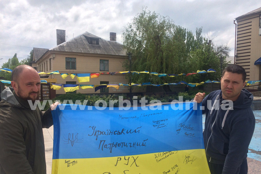 Сегодня, 15 мая, в центре Мирнограда, у фонтана, проходит выставка флагов со всей Украины, которая действует в рамках большого украинского марша «От города к городу объединяются флаги».