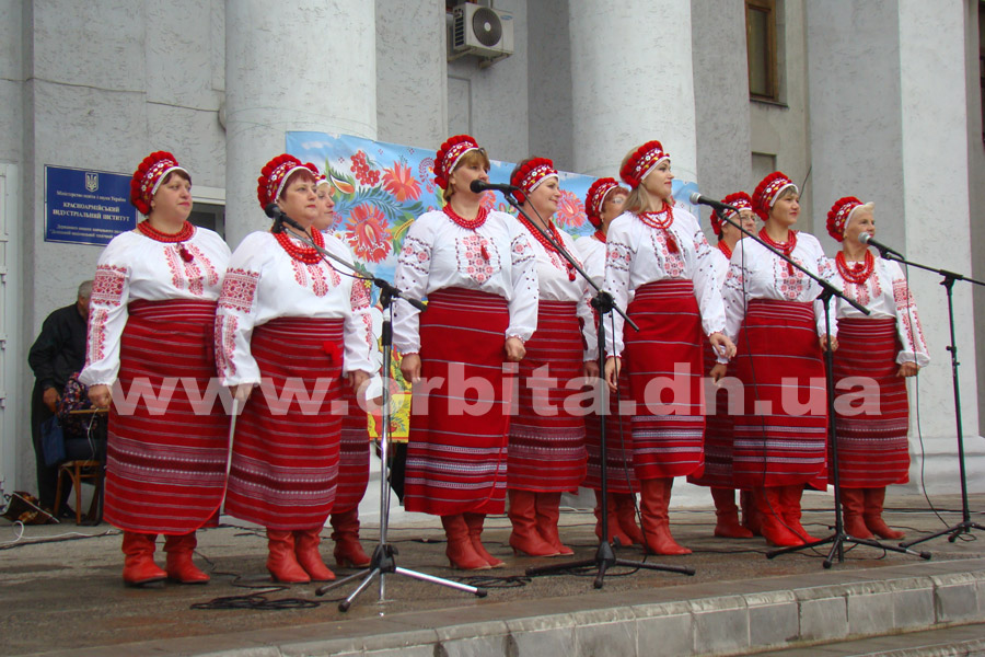 А на крыльце здания института состоялся праздничный концерт. Свои выступления зрителям подарили народный театр песни «Златица» Покровской музыкальной школы имени Леонтовича и Новоелизаветовский народный хоровой коллектив «Перлина».