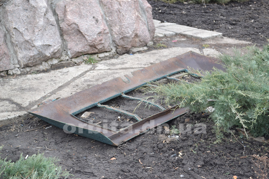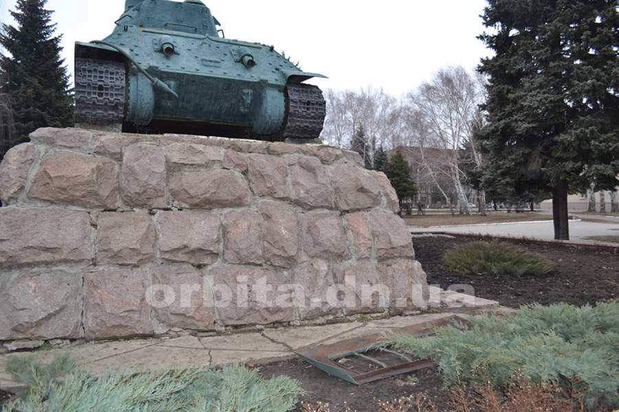 На площади Шибанкова пострадал памятник на братской могиле воинов и подпольщиков, погибших в годы Второй мировой войны. У танка со стороны моторного отсека отпала крышка.