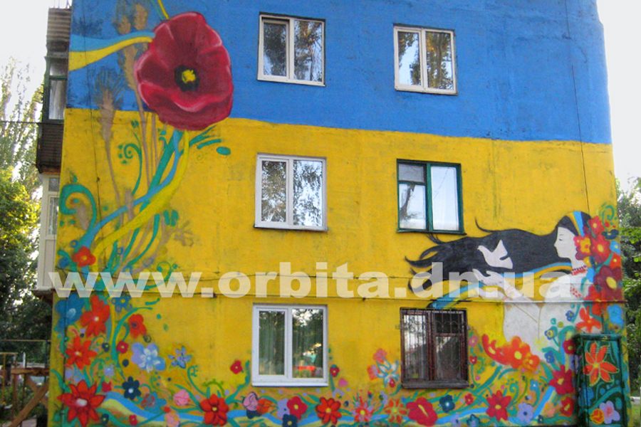 Художники из Селидова нарисовали патриотический мурал на стене дома №5 в переулке Колосова города Покровска.