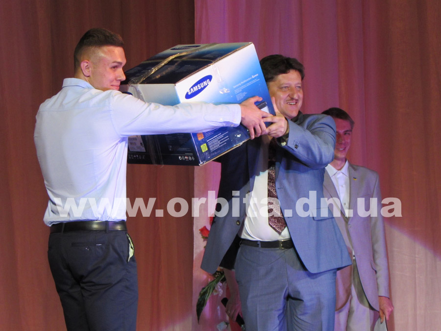 От имени многотысячного коллектива горняков шахтоуправления «Покровское» преподавателей, сотрудников, студентов и выпускников ДонНТУ поздравил главный инженер предприятия Алексей Янжула. В подарок от трудового коллектива ШУ «Покровское» Алексей Сергеевич преподнес вузу-юбиляру сертификат на 15 тысяч гривень.