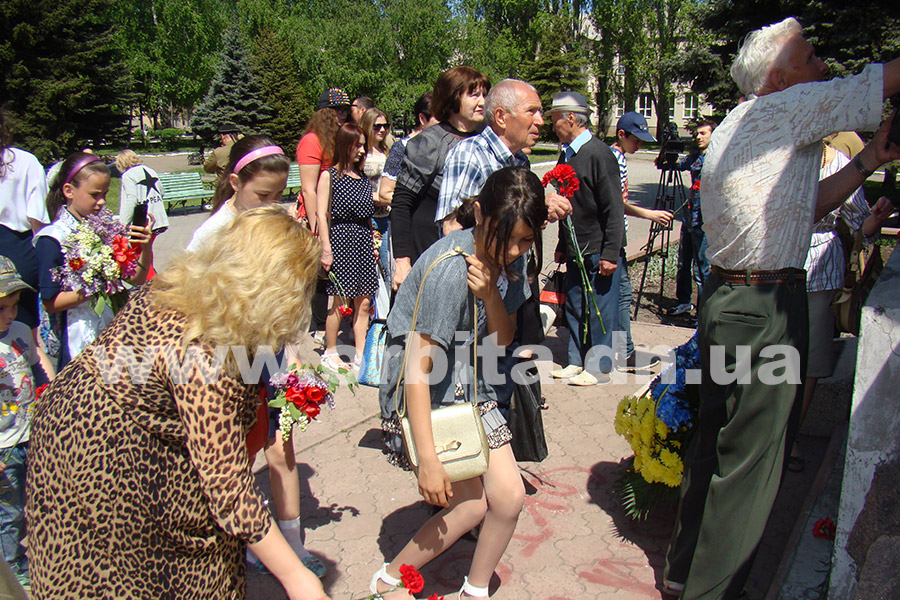В начале акции организаторы и участники автопробега, представители покровских властей, городской организации ветеранов, военнослужащие и школьники возложили цветы к братской могиле.