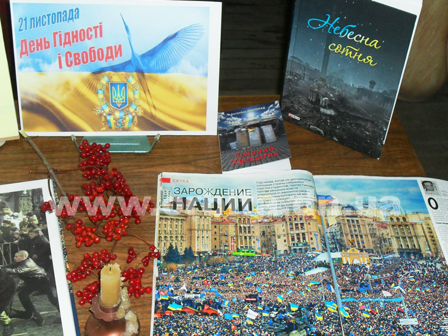 Подготовленная сотрудниками библиотеки информация о Революции достоинства, об акции киевских студентов, разгоне и расстреле мирных демонстрантов на Майдане Независимости сопровождалась мультимедийным показом роликов о событиях недалекого прошлого и музыкально-литературной композицией.