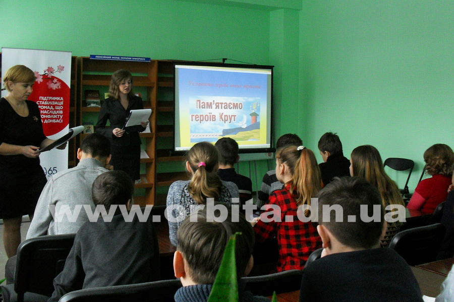 В библиотеке прошел час памяти под названием «Уславимо героїв юних триста», на котором побывали учащиеся 8 класса ОШ №12. В ходе мероприятия ребята узнали о трагическом бое под Крутами, посмотрели документальные видеоролики и почтили минутой молчания погибших героев.