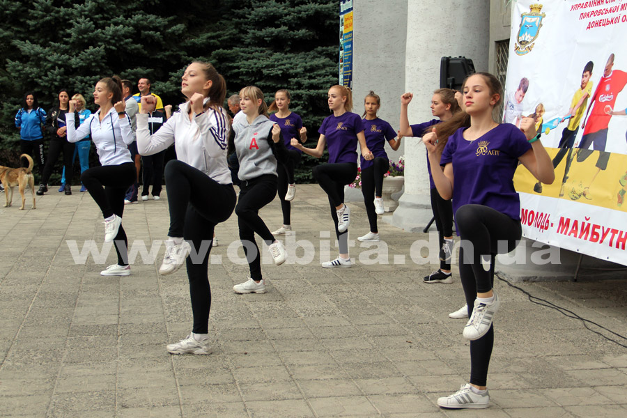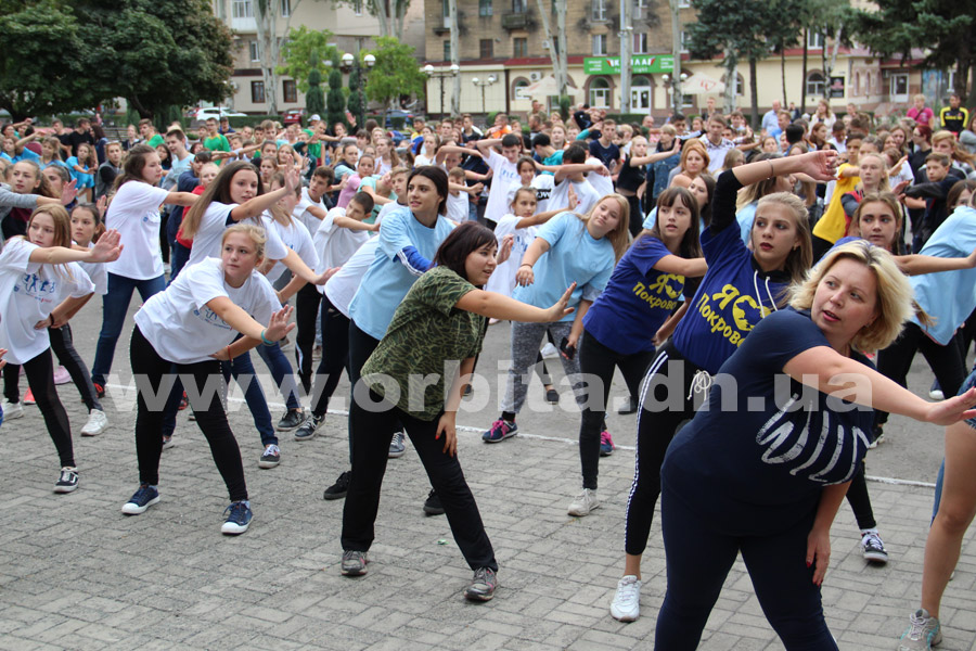 Участников спортивного флешмоба поприветствовал начальник управления семьи, молодежи и спорта Покровского горсовета Леонид Михалко: поздравил с наступающим праздником и пожелал, чтобы спорт вошел в жизнь каждого юного и взрослого жителя Покровска.