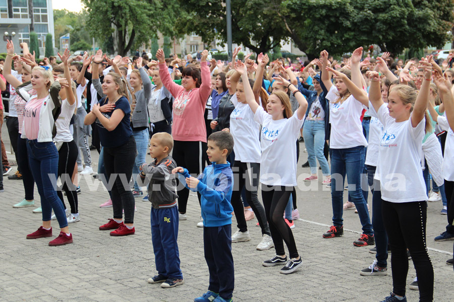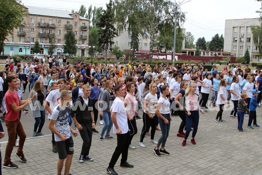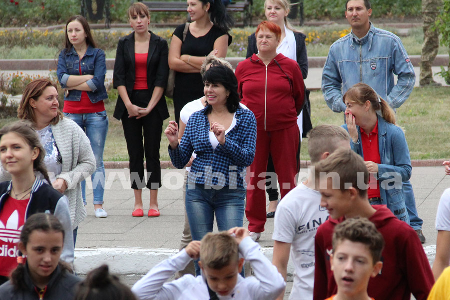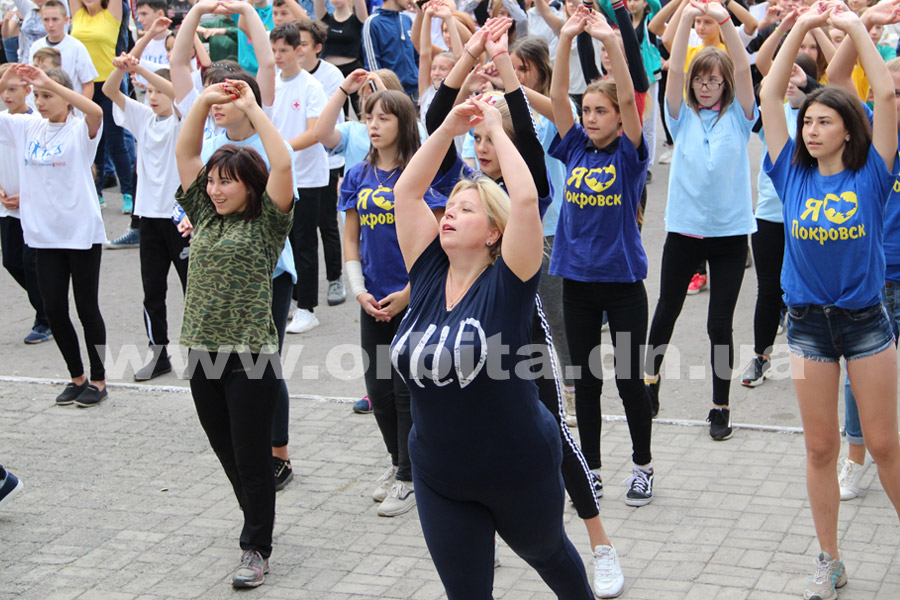 В 8.30 началась зарядка, в которой, кроме детей, приняли участие их учителя и спортивные тренеры. Участников флешмоба воодушевляли личным примером начальник городского отдела образования Марина Голуб и директор Покровской ДЮСШ Игорь Юркин.