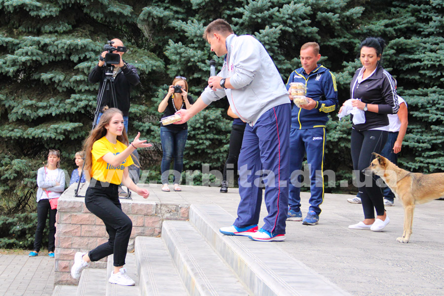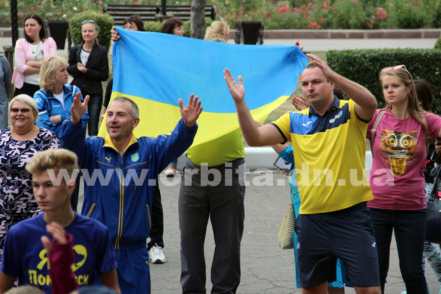 С утра на площади Шибанкова, перед зданием Индустриального института, собралось более 500 школьников, представителей учащейся и студенческой молодежи, трудовых коллективов, военнослужащие Покровско-Ясиноватского ОГВК, просто ценители спорта – чтобы напомнить всем горожанам о важности здорового образа жизни.