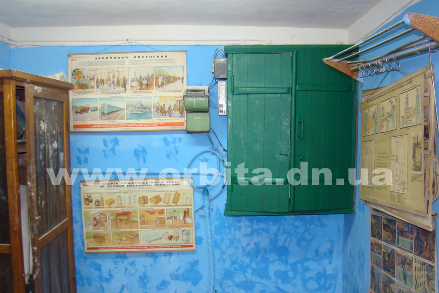 Первым делом завсектором по вопросам чрезвычайных ситуаций Покровского горсовета Алексей Пехотин включил в подвале электричество, чтобы продемонстрировать прошлогодний ремонт. В укрытии есть центральное отопление, водоснабжение, санузел. Оно оборудовано стационарной телефонной связью, запасным выходом, вентиляционной установкой – нагнетателем воздуха. На стенах укрытия – пожелтевшие от времени, но не утратившие актуальности плакаты как неизменные атрибуты гражданской обороны. На столах – несколько противогазов.
