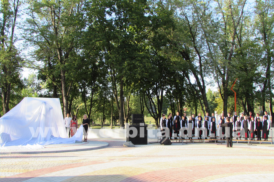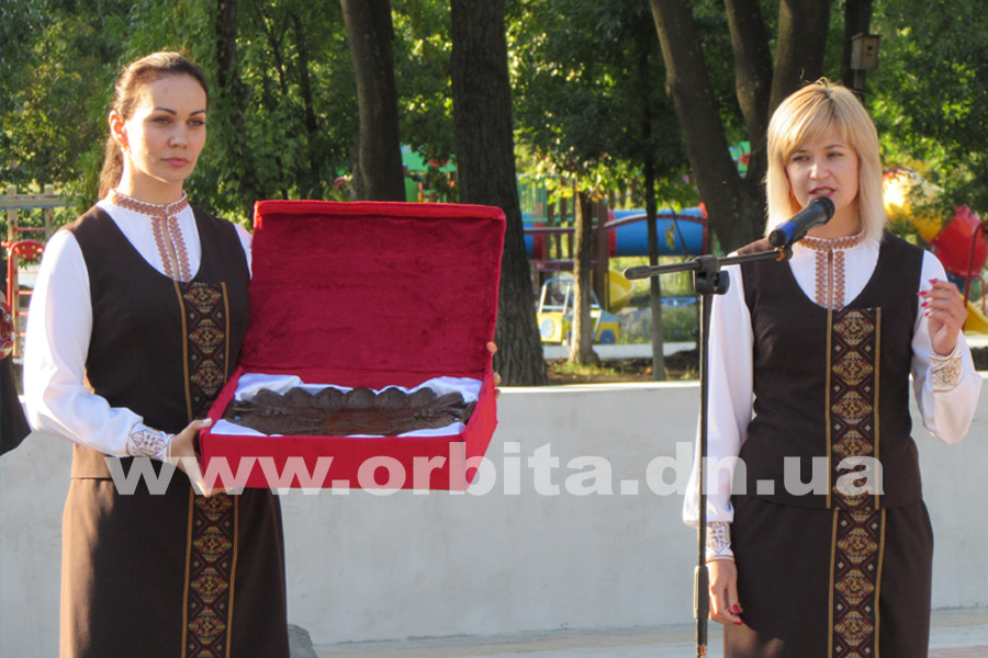 Скульптурную композицию открыли секретарь Покровского городского совета Ирина Сущенко, советник министра культуры Анжелика Рудницкая и архитектор проекта Сергей Шапошников.