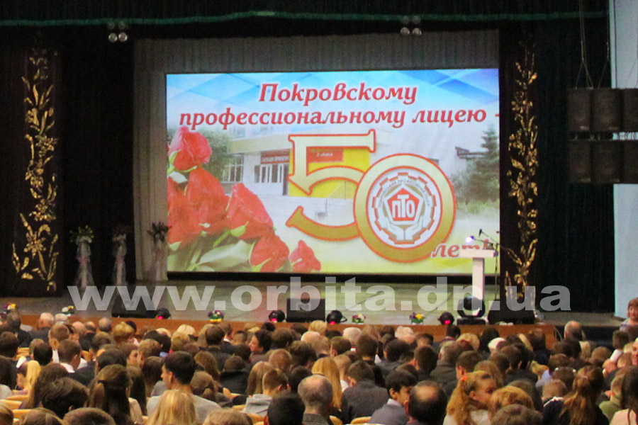 Торжество в большом зале Дворца культуры началось с показа видеоролика о полувековой истории Покровского профессионального лицея. Она берет начало в далеком 1968 году, когда Красноармейское ПТУ №38 впервые распахнуло свои двери в городе Димитрове (сегодня – Мирнограде) на базе треста «Красноармейскшахтострой». Первым директором учебного заведения стал Михаил Егорович Котляр, а первыми специальностями, которые могла получить учащаяся молодежь, были строительные – маляр-штукатур и плотник.
