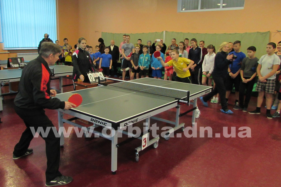 Для показательной игры к столу были приглашены ветеран спорта, отличник образования Украины, бывший директор ДЮСШ Иван Останин и ведущий спортсмен школы, стипендиат Покровского городского совета за достижения в спорте Александр Стибель.