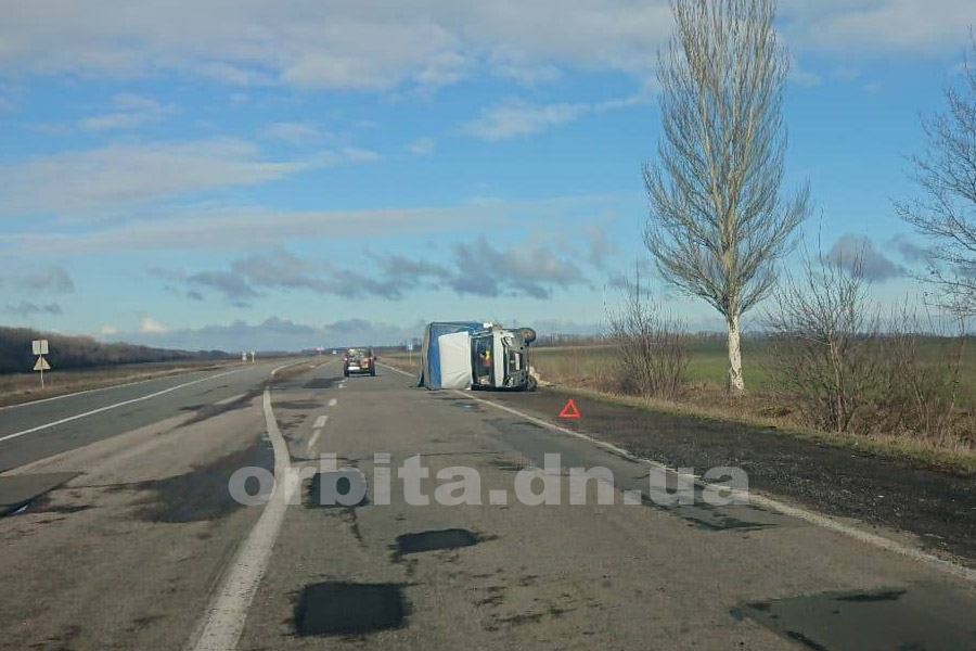 В Покровском районе перевернулся грузовой автомобиль. Об этом «Орбите» сообщили очевидцы.