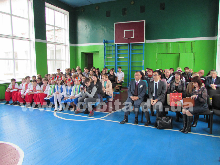 Их встречали по украинской традиции – в вышиванках и с хлебом-солью. В честь визита школьники подготовили небольшой концерт, после которого все, кто принимал участие в реализации проекта, были награждены почетными грамотами за плодотворную работу. А после концерта для посла Суми Шигеки была организована экскурсия по школе.
