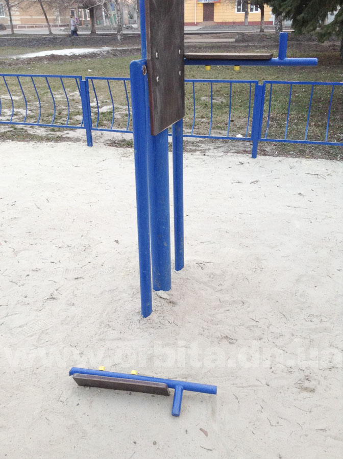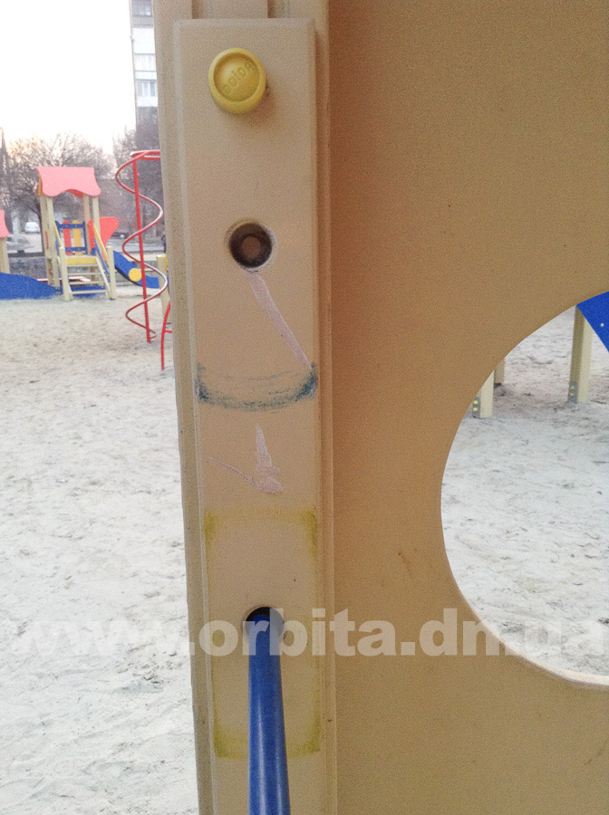 Первая зима для детской площадки, установленной в прошлом году на бульваре Андрющенко, завершилась с относительно небольшими потерями. Однако испытаниями на прочность для детского городка постоянно становятся посещения граждан, не особо заботящихся о его сохранности.