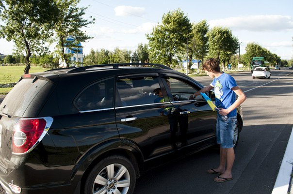 Вчера активисты молодежного общественного объединения «Патріотичний рух Донбасу» провели акцию «Водій-Патріот» под слоганом: «Патриот? Остановись – получи флажок!». Об этом говорится на официальной странице активистов в одной из соцсетей.
