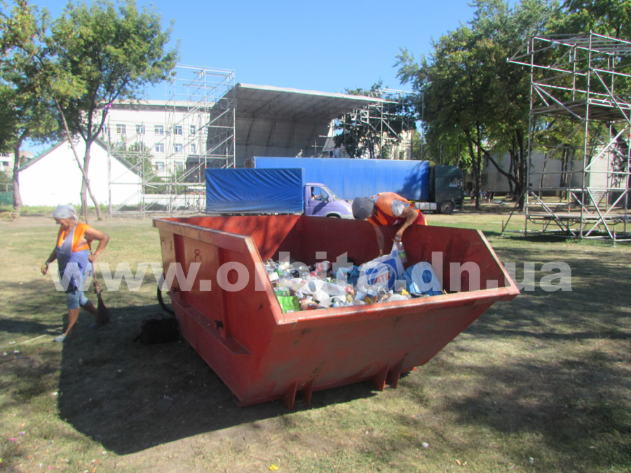 Сегодня коммунальщики с шести утра приводят в порядок бульвар Андрющенко и перекрытый вчера участок улицы Европейской. Отдыхавшие здесь покровчане оставили горы мусора и разбитых бутылок.