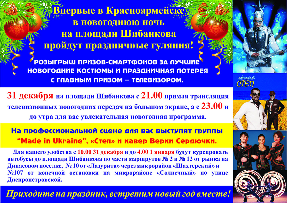 Впервые в Красноармейске в новогоднюю ночь на площади Шибанкова пройдут народные гулянья.