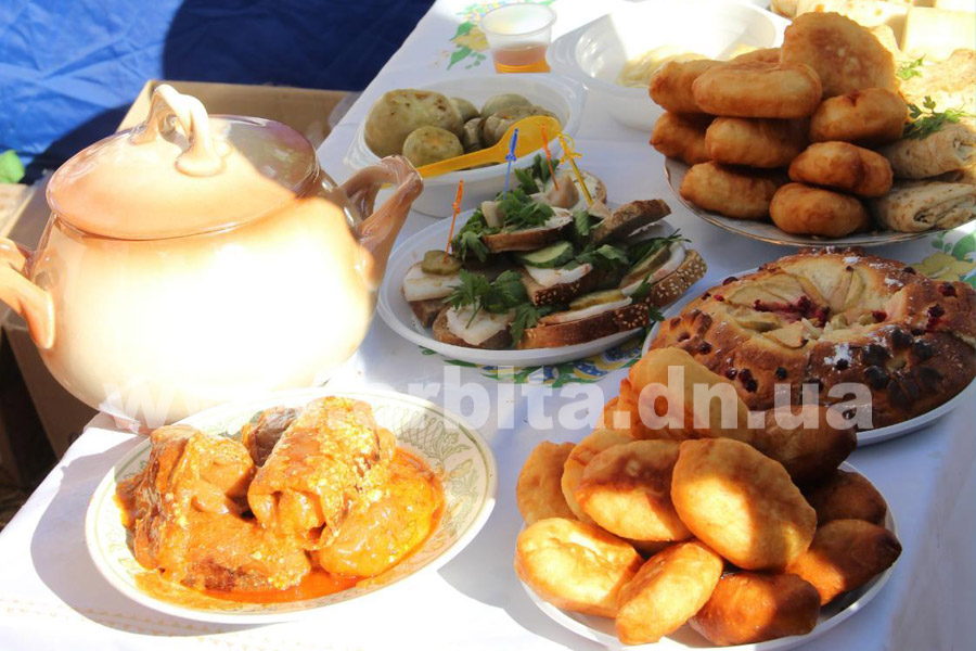 Здесь можно было не только увидеть выставку блюд украинской национальной кухни, но и попробовать любое из них. Особым спросом пользовались пироги и другая выпечка.