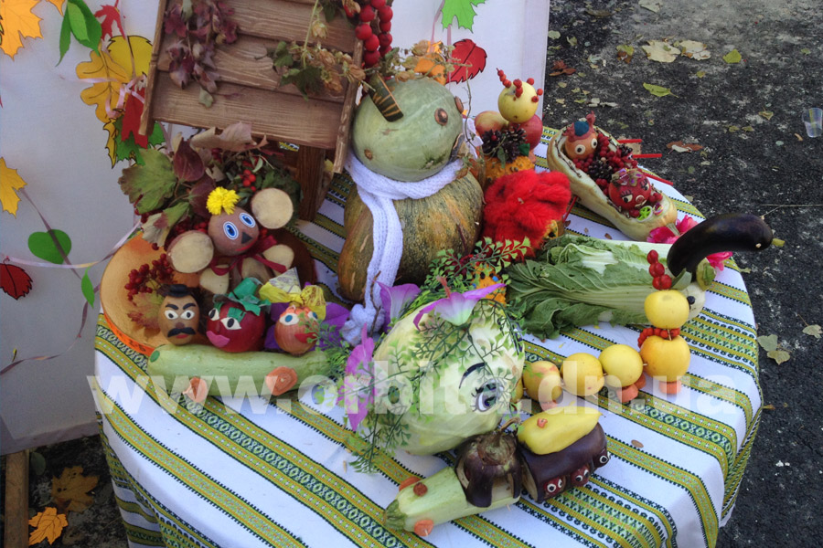 Школьники изготовили поделки из овощей, фруктов и других даров осени, на фоне которых гости с удовольствием фотографировались.