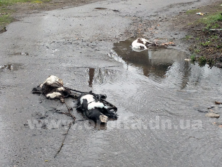К приезду журналистов тела животных находились на том же месте, где их обнаружили люди. После нашего звонка сотрудники коммунальных служб пообещали убрать трупы.