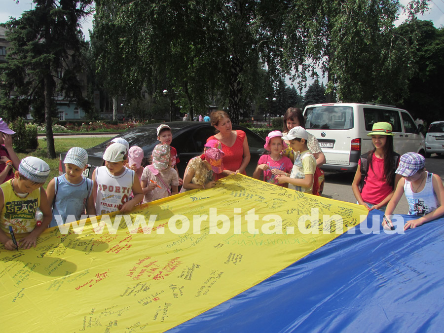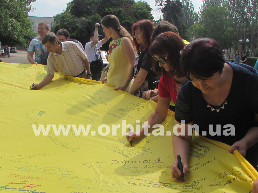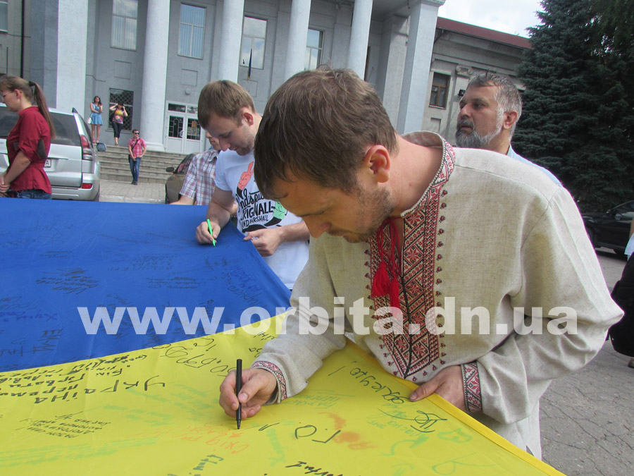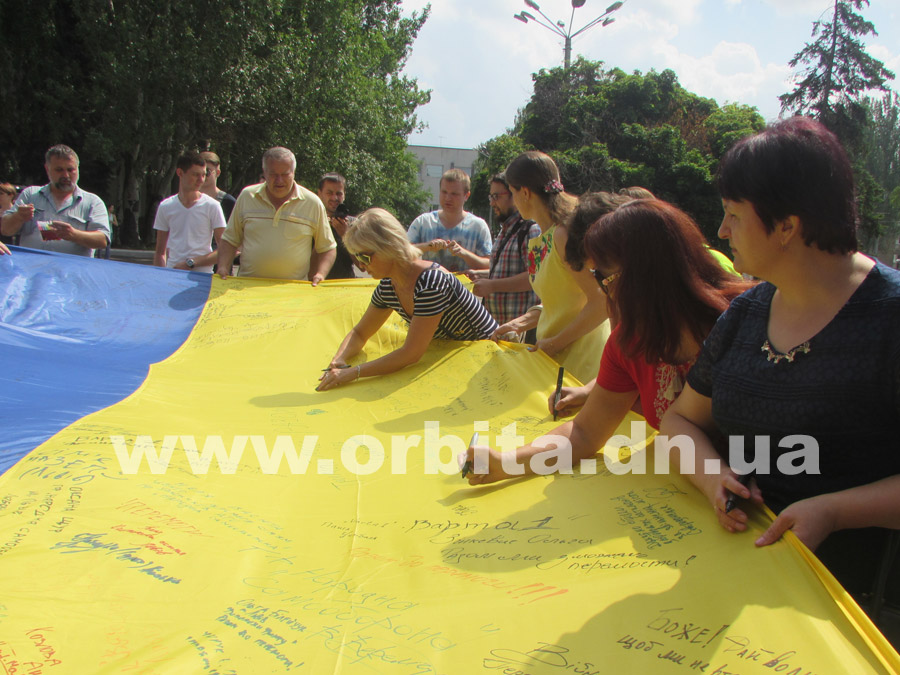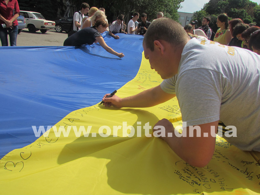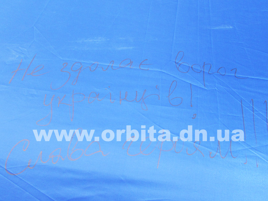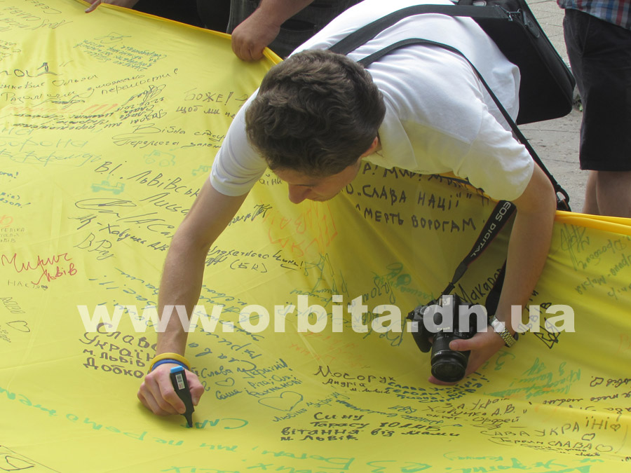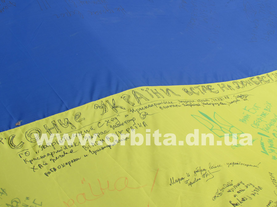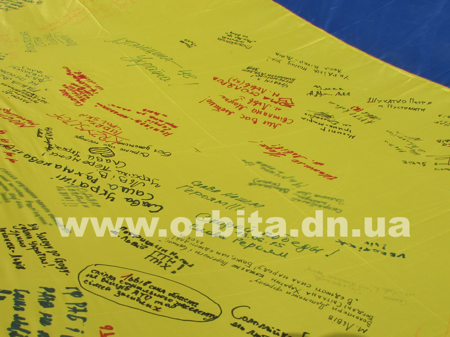 По их инициативе из Львова в Донбасс прибыл 10-метровый флаг Украины. До сегодняшнего дня полотнище уже побывало в нескольких городах Донецкой области, и везде местные жители, активисты и волонтеры записывали на нем свои мысли, пожелания и оставляли подписи.