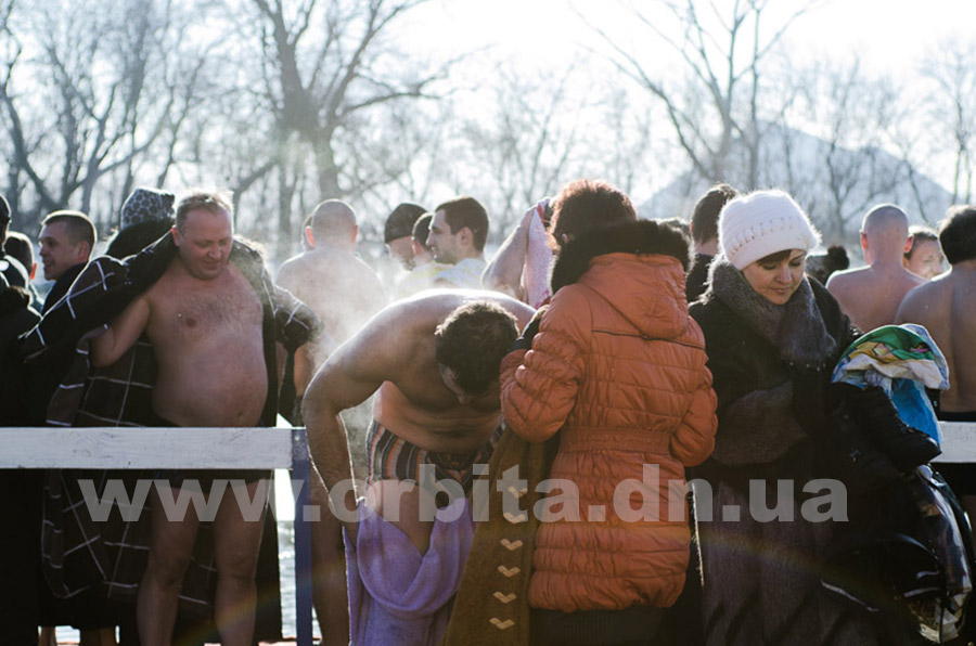 Еще во время освящения воды первые смельчаки разделись и с нетерпением ожидали момента, когда смогут окунуться в студеную зимнюю воду. Следом за ними стали нырять все желающие – мужчины, женщины и даже дети.